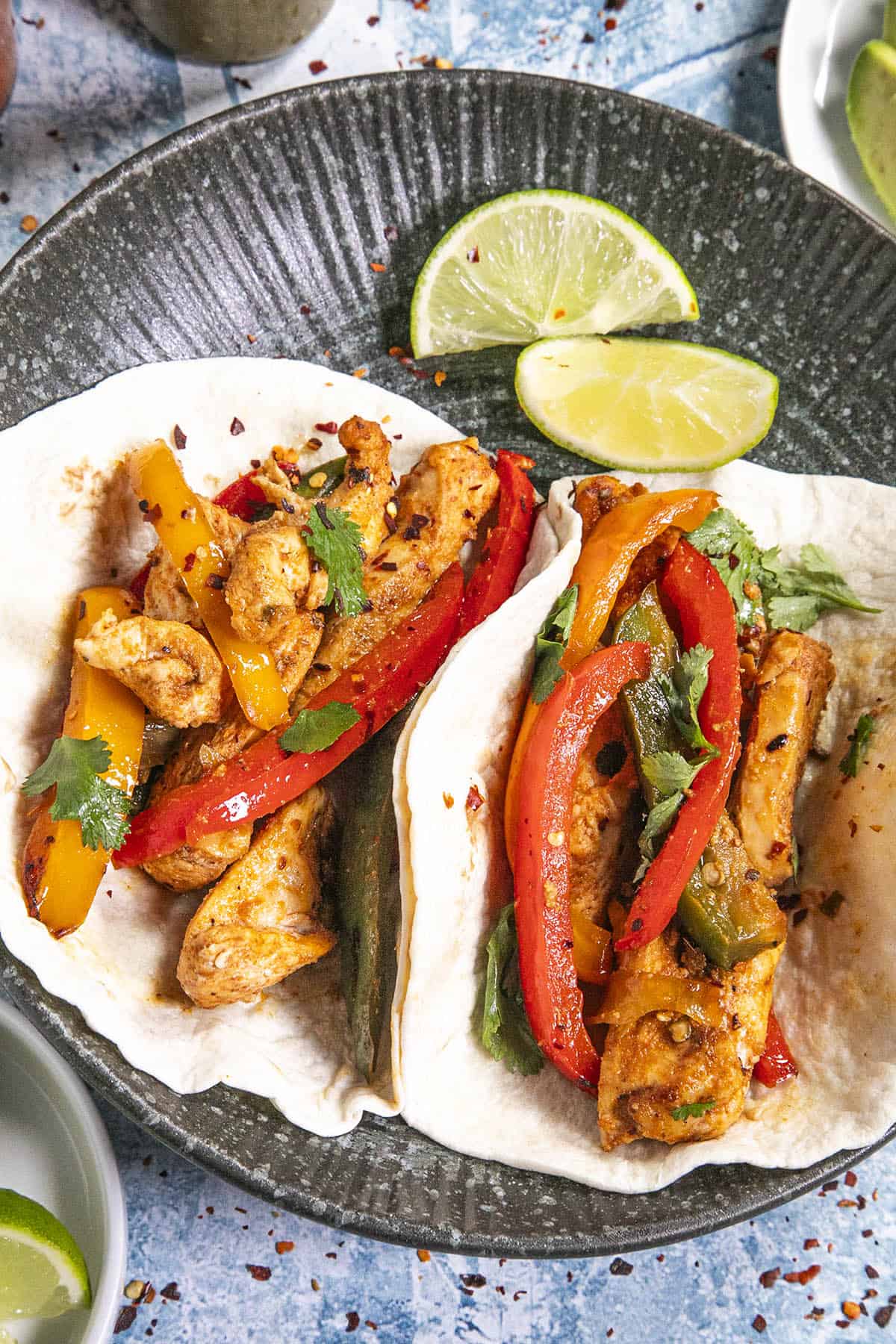 Serve chicken fajitas sizzling in the hot pan like they do at restaurants, with warmed flour tortillas on the side.